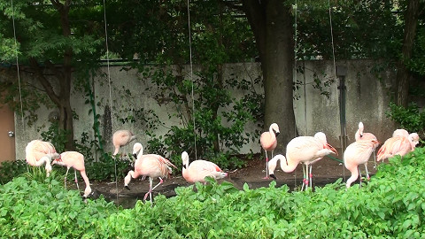ペンギンの池からしばらく行くと、フラミンゴが群れている一角があった。