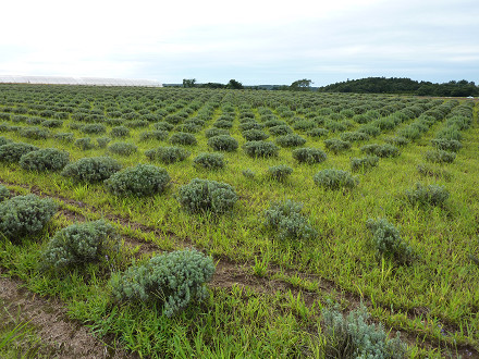 曇空の下、地平を覆うようにラヴェンダー畑が広がっていた。