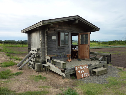 手造りの小屋の販売所でラヴェンダーエッセンスと蒸留水を買う。
