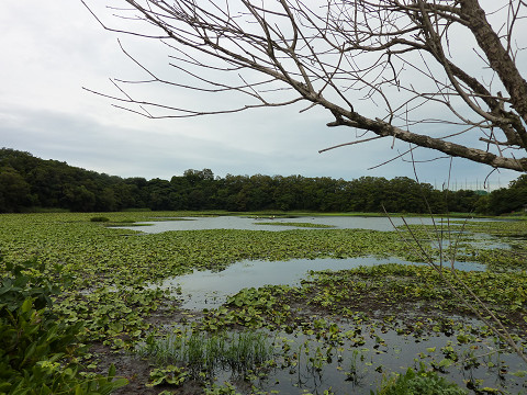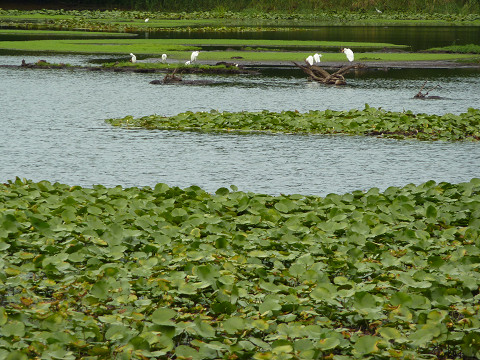 水草や蓮が水面を