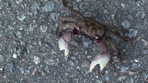 湖畔の道路には、サワガニがいっぱい行き来していて、危ないことこの上もない。