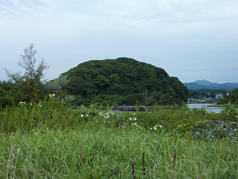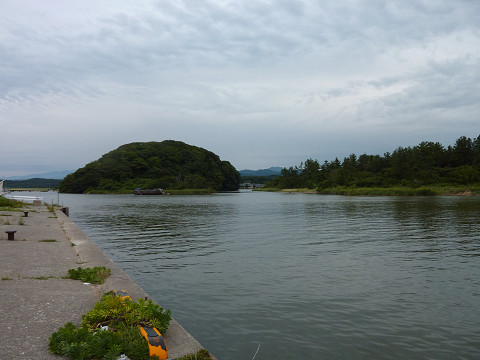 塩屋の町外れから河口に出ると、鹿島の森がこんもりと全貌を見せた。