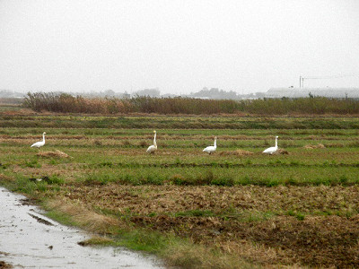 新潟市内のあちらこちらにある潟でも、相当数のコハクチョウが越冬する。