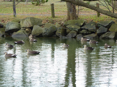 カワウ、ガンSP、マガモ、カルガモ、コガモ、ヒドリガモ、