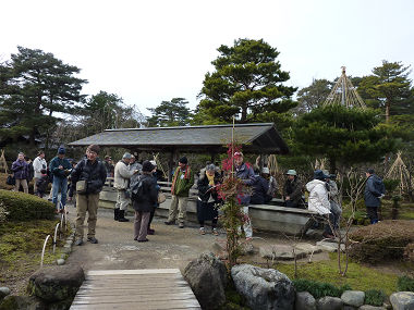今日は兼六園での探鳥会の日。9時少し前に集合場所に着いたのに誰もいない。