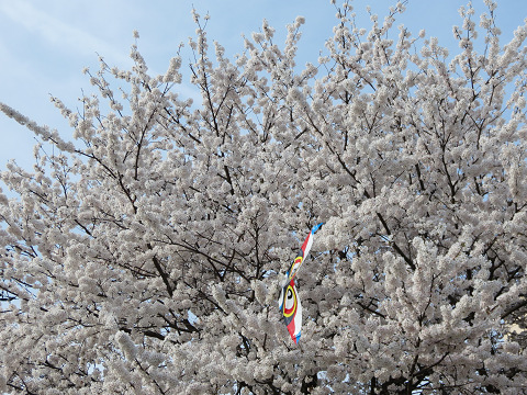 金魚たちと私の昼食後、夕方の用事まで時間があるので、河川敷の桜を見に行った。