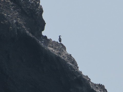 振り返って灯台を望むと、すぐ下の岩に猛禽類がとまって辺りを見回している。