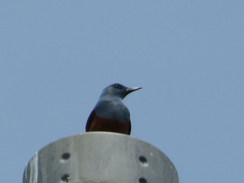 灯台の周囲の電柱にも、イソヒヨドリがとまっていた。