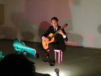 ギタリストの垣田堂さんを中心に、演奏あり、書道パフォーマンスあり、舞踏ありの