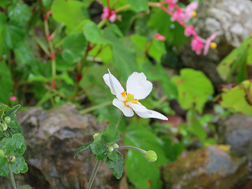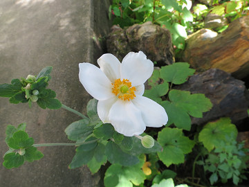池のほとりの秋明菊が、ひとつふたつと花開き始めている。