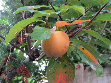 近所では、もうかなり実が熟しているらしい大きな柿の木が方々にあって、