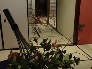 茶屋街の一角で、建築家の友人が参加している花展が催されている。