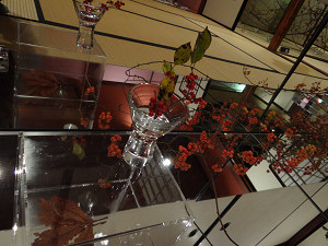 ウメモドキの赤い実が畳に映える。