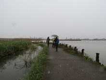 潟の水辺に沿った小道を歩く。