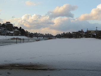 橋の下では雪が