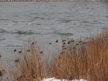 ホオジロガモたちは波立つ水をものともせず、相変わらず潜ってばかりいた。