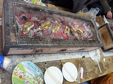 中央公園でのフードピアランドは、能登産の生牡蠣の炉辺焼きが手軽にできるのが魅力的。
