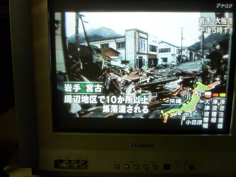 地震情報が入り、津波に注意してくださいとさかんに呼びかけていたが、