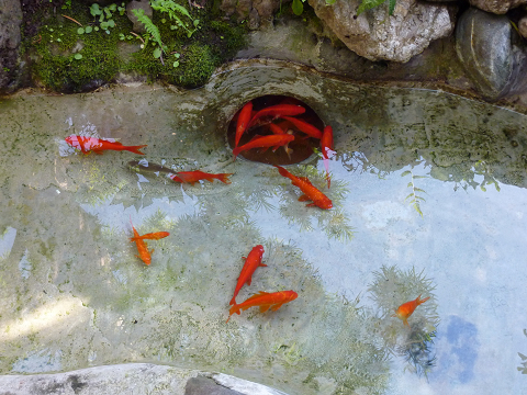 苔をおとした池にきれいな水を入れ、金魚たちを戻すと、