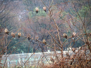 しばらく行くと、まだ工事の手が入っていない草叢の木にキジバトの群がいた。