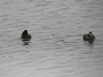 年末から来ているホオジロガモのつがい(1羽はエクリプス)が、