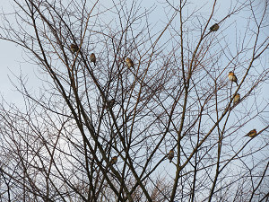 冬枯れの土手の上を飛び回る小鳥の群が遠くに見えたので、