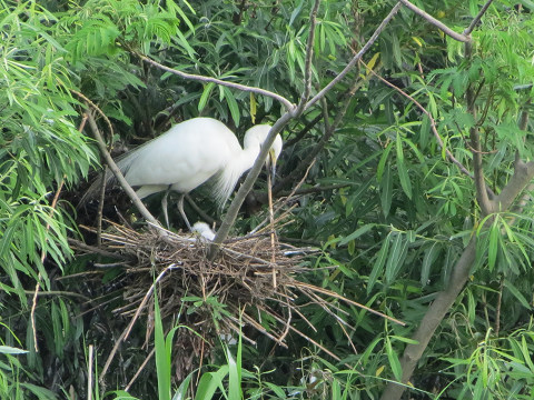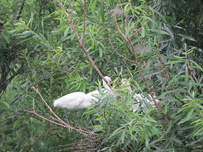 ゴイサギの巣の後ろに、チュウサギやアマサギの巣が見えたりもする。