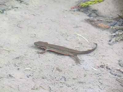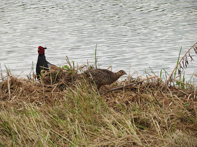 少し離れた岸辺にヒドリガモがいた。渡りをしない居残り組なのだろうか。