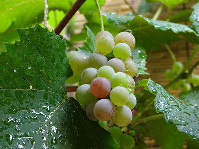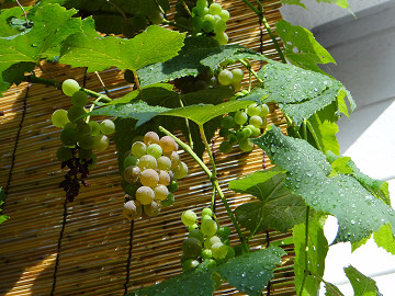 そんな猛暑の中で、今年は鉢植えのブルーベリーも葡萄も、実をぎっしり付けた。