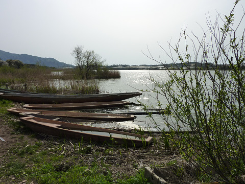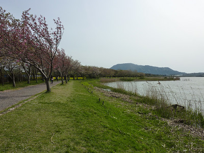 佐潟の周囲の桜並木には、まだ少し花が残っていた。満開の時はさぞきれいだっただろう。