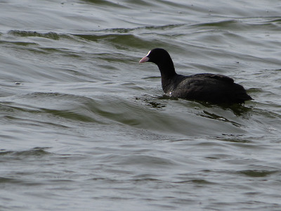 留鳥のオオバンは、広々と静かになった湖面をのんびり滑る。