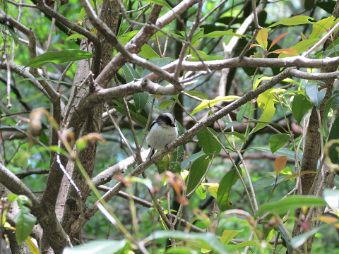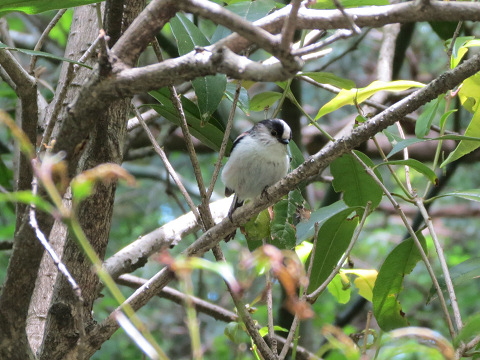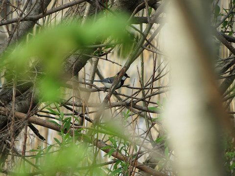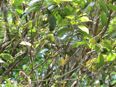 エナガが潅木の細い枝の間を忙しげに動き回っていたので、撮影を試みて