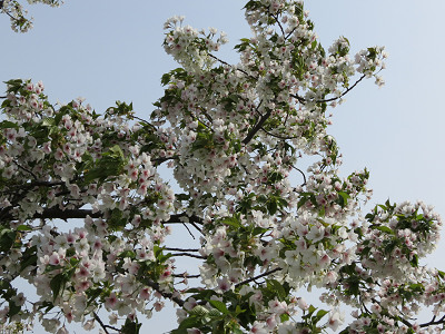 白い桜が風に揺れていた。これは何という種類だろう。