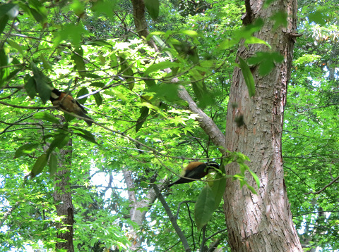 左下の、ヒナがいる巣を見張っているようにも見える。