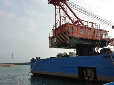 さらに進むと、半分水に浸かった平底舟が置かれている。