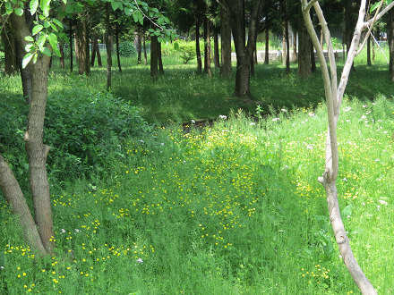 6月8日もいそいそと出かけ、自転車を停めてから、草叢の中の小径を