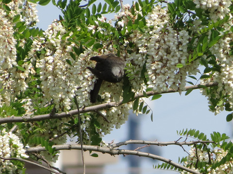 まだ葉が茂らない季節、木々の枝の間に巣らしきものがポツポツ見えていたが、