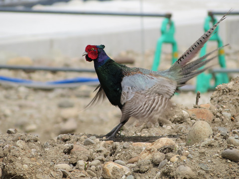 イカルチドリが工事中の土の上を、ちょこちょこと走っていった。