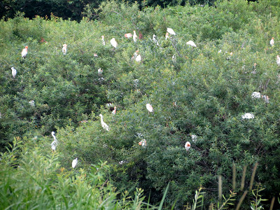 木の生い茂る緑地帯に数え切れないくらい多くのサギが集まって騒いでいた。