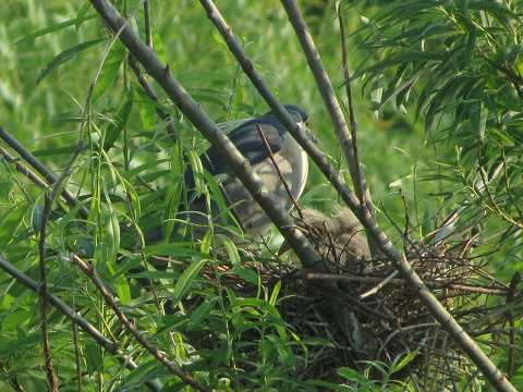 ゴイサギのヒナたちは少し大きくなったかなと見ると、