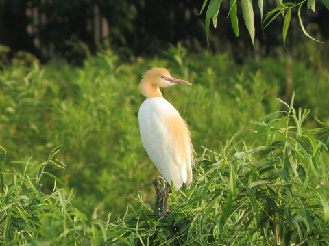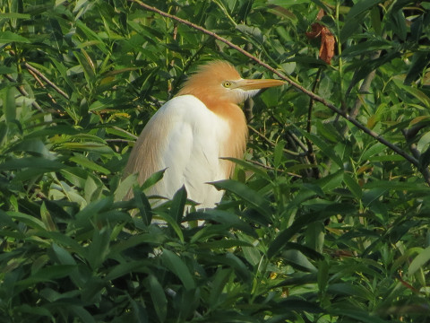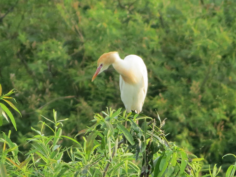 アマサギには、頭がツルンとしてオレンジ色が薄い子と、タテガミのようにぼさぼさして