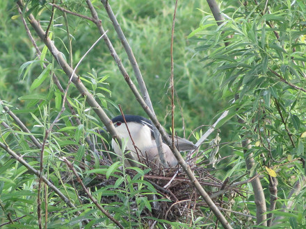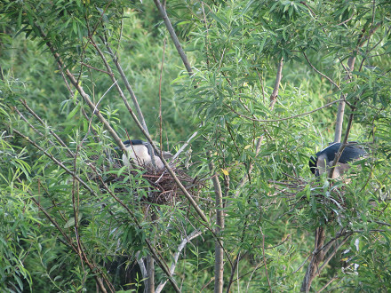 巣の近くにいるゴイサギは、真っ白な胸の子ばかり。