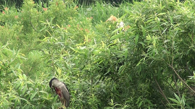 近くの枝に何となくお腹が茶色っぽいゴイサギがとまっていた。