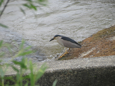 堰堤にはゴイサギが