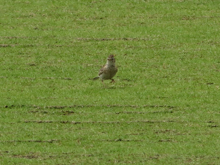 芝の上のヒバリなんて珍しい光景である。