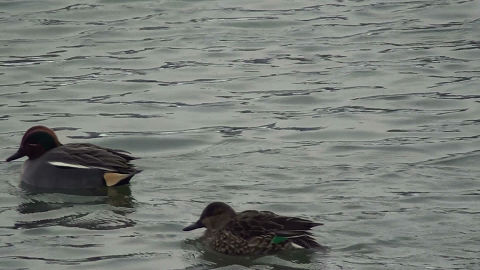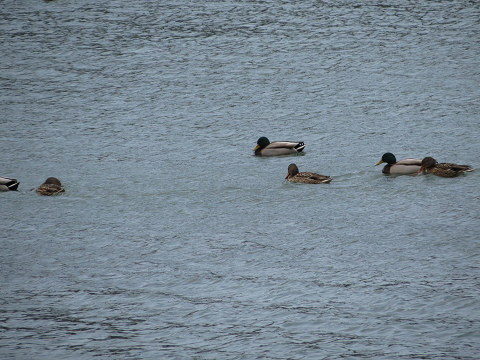 コガモも2つがい。カワアイサ、カイツブリもいた。