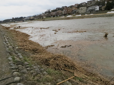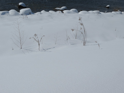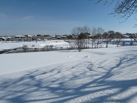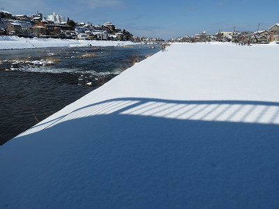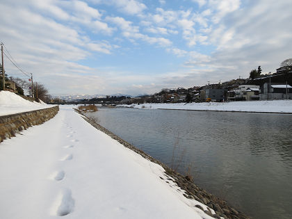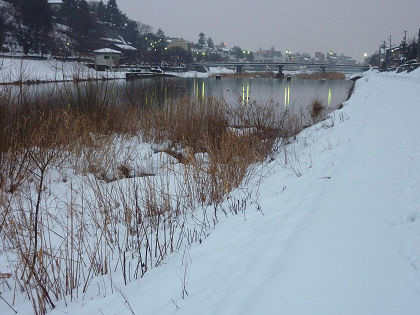 遊歩道が雪に埋もれている時期は、川原に人影もなく、