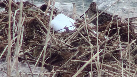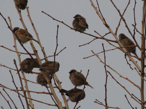 しばらく後、草の中で寒そうにしているスズメの群を見ていたら、