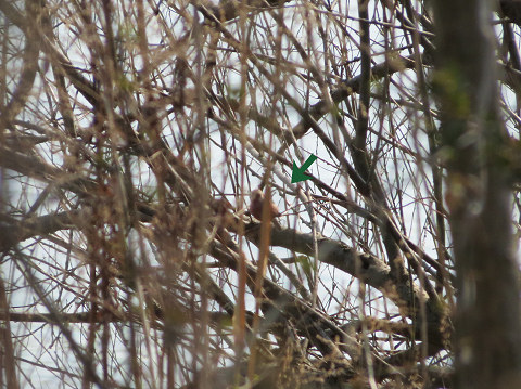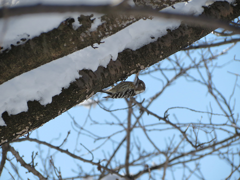 緑地公園側の木立には、エナガ、コゲラ、シジュウカラが飛び交っていた。