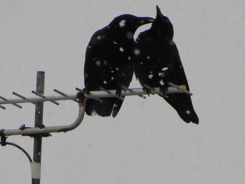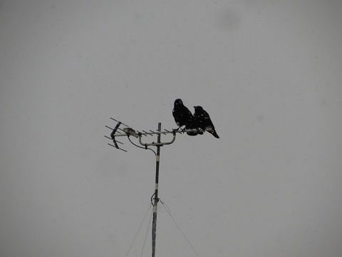 雪が積もると食事に不自由して、野鳥は民家の庭までやって来る。